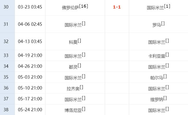根據(jù)賽程安排,在國家隊比賽日結(jié)束之后,國米就將在主場迎戰(zhàn)羅馬,之后做客對陣科莫,這2隊如今為了爭四,都已經(jīng)殺瘋了,國米遇到這2個對手,隨時可能再丟分。第36輪,國米還將做客對陣拉齊奧,最后一輪則在客場打博洛尼亞,這2場比賽同樣無比艱難。也就是說最后8輪比賽,國米要對陣4大強隊,這幾場比賽,一旦國米丟掉6分或以上,那他們很可能失去爭冠的機會。